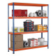 Schwerlastregal Weitspannregal mit 4 Ebenen - Höhe 2,44 m, Breite 4,90 m (2 Regalfelder), Tiefe 470 mm